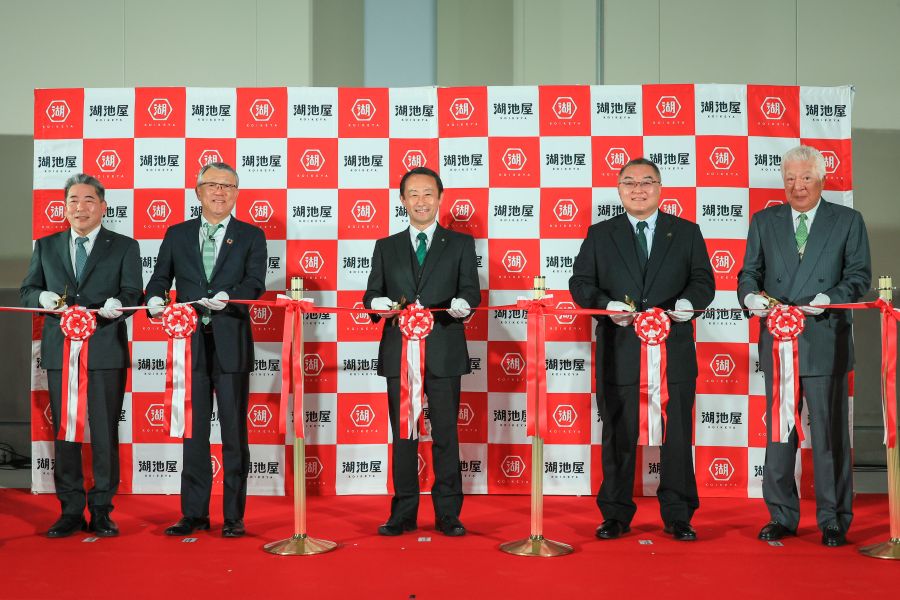 記念式典の会場は、巨大なNEW工場の中。ずらりとテレビカメラやメディアの記者が並ぶ前で、オープニングVTRの上映、湖池屋・佐藤社長の挨拶、来賓祝辞、テープカット等が行われました。みんなニコニコ、あたたかでめでたい空気感。何かが始まる時って、やっぱりワクワクいい気分になりますね。