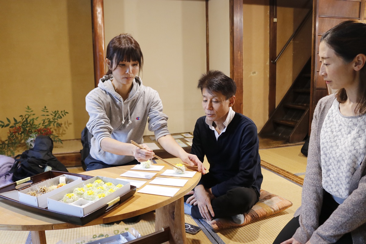 なんとこちらのお菓子、このまちやどにちなみ“金木犀”をイメージして、松花堂さんがイベントのために作ってくださったものだとか。そんな粋で綺麗な和菓子をみんなであれこれ話しながら食べる時間、幸せ満ちるひとときでした。