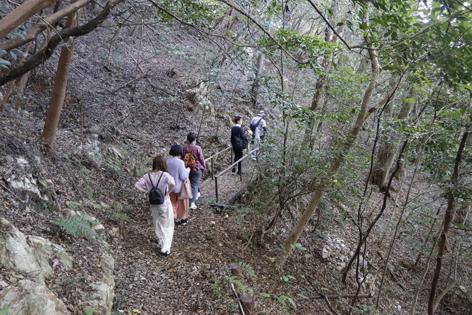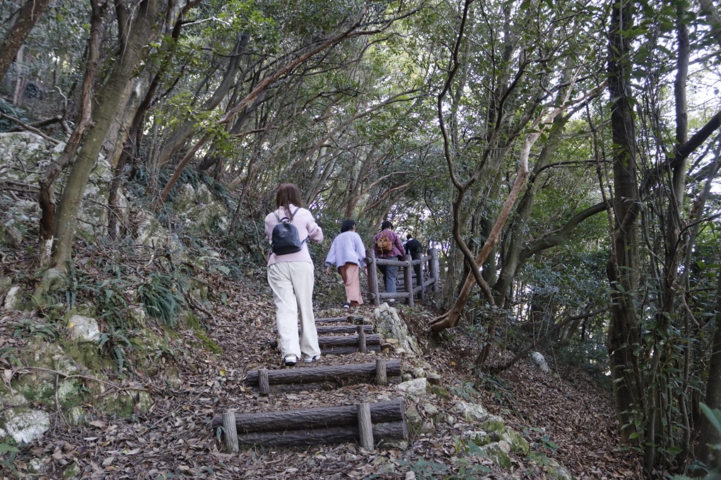 植物を見たり、木の上の可愛いリスに歓声を上げたり、町並みを見下ろしたり…なだらかな山道歩きは、様々な発見があって楽しいです。