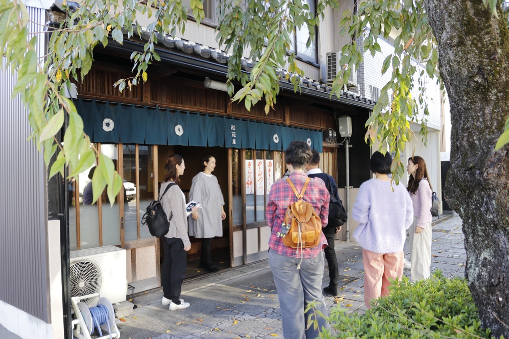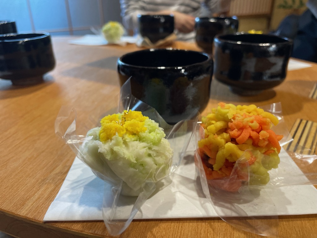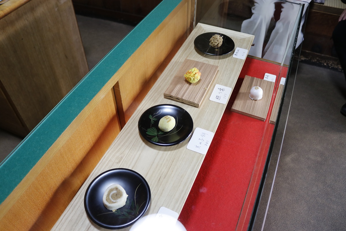 次の目的地「松花堂」は、伊奈波神社の参道にある老舗の和菓子屋さん。ここで各自好きな季節の和菓子を選ばせていただきました。