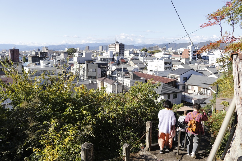舞さんが岐阜町を好きになった理由の一つが、「鐘の音が聞こえるまち」であること。プログラムの最初はまちやどのルーツともいえるその鐘――権現山にある「時の鐘」を目指すところから始まります。