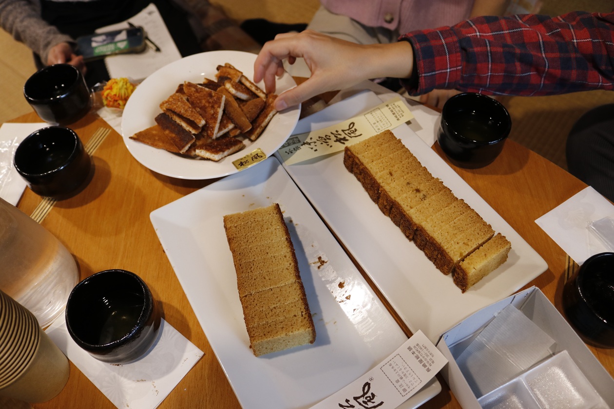 途中、「長崎屋本店」さんにも立ち寄って、銘菓「味噌松風」と「松風」を購入。こんな風に和菓子の名店を歩いてハシゴできちゃうのも岐阜町ならでは。プライスレスな体験です。